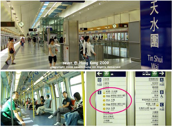 天水圍市鎮的主要交通是以「日」字形的環線輕鐵連絡每座社區,轉乘資訊的軟、硬體設備相當完善。