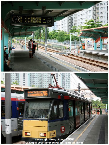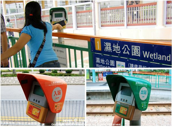 小七第一次在香港搭乘輕鐵,很有意思的新體驗,持八達通進出各站月台都要在這裡"趴"一下。