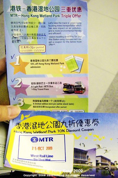 小七的免費乘車紙卡來自於搭港鐵遊濕地公園的三重優惠之一。(活動至2010年2月13截止)